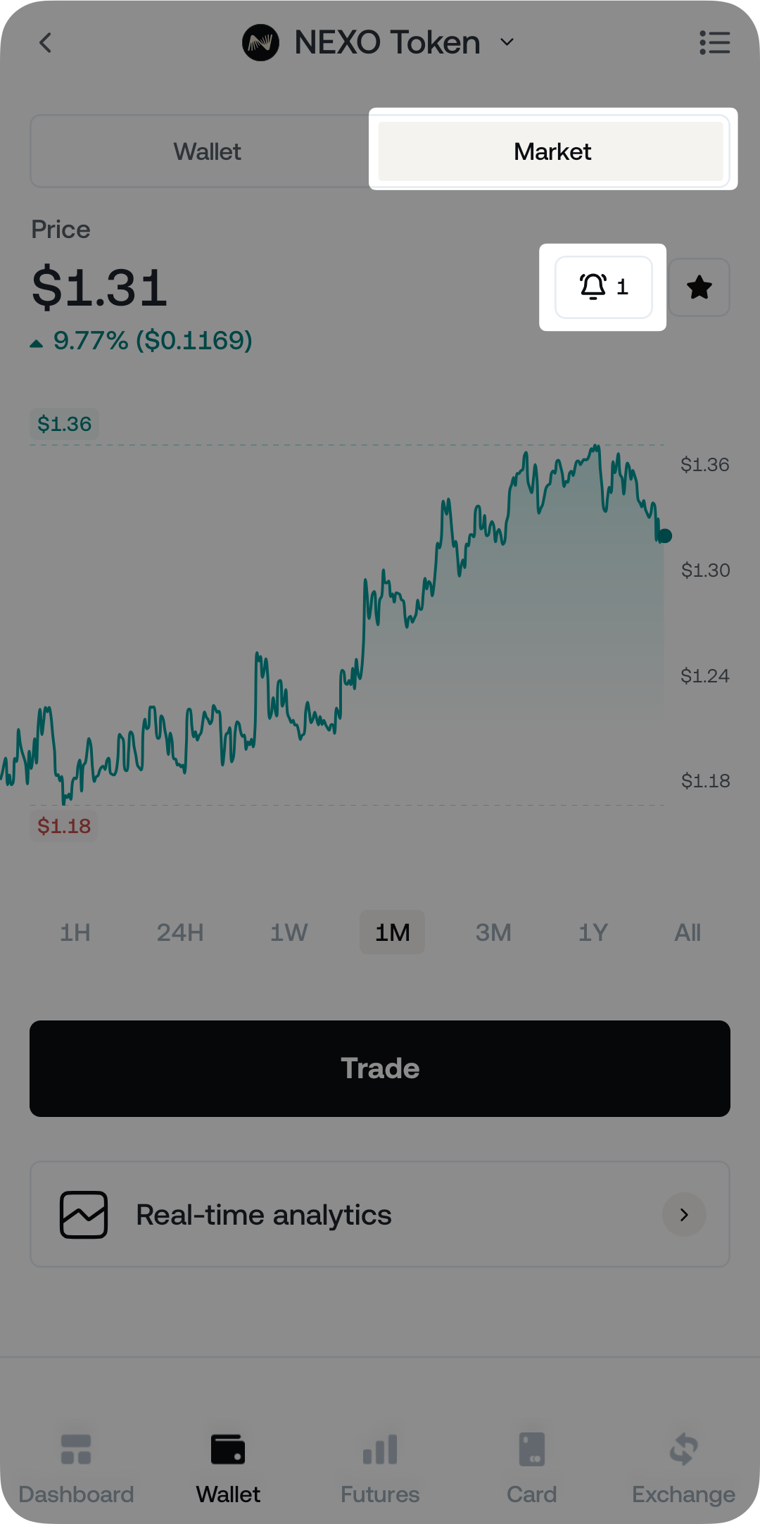 1. Navigate to the asset’s Market tab and tap the bell icon above the chart.