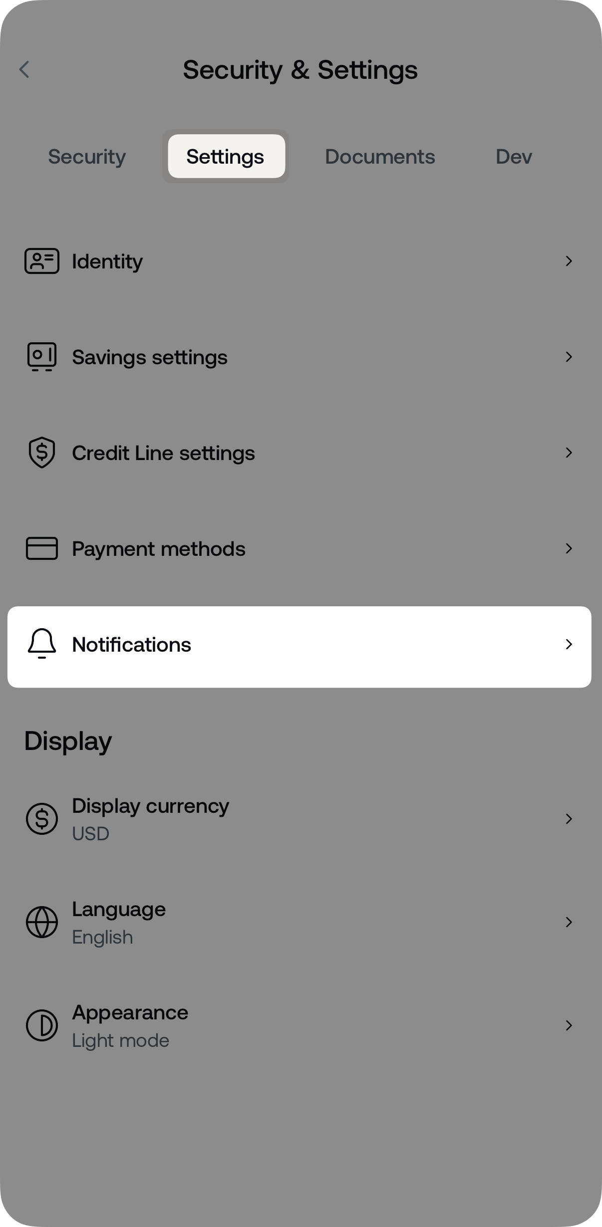 These preferences apply to push notifications sent by the Nexo app. Email and in-app messages are not affected by these settings.