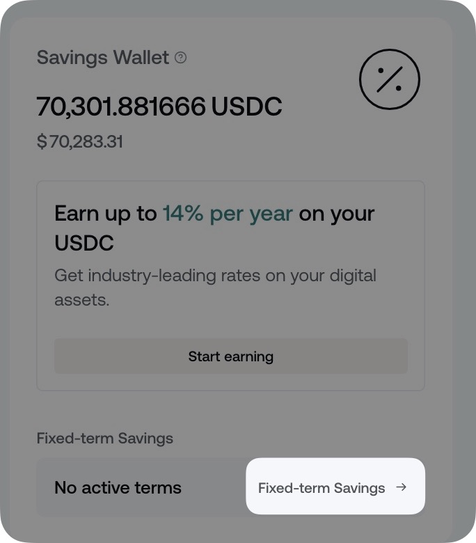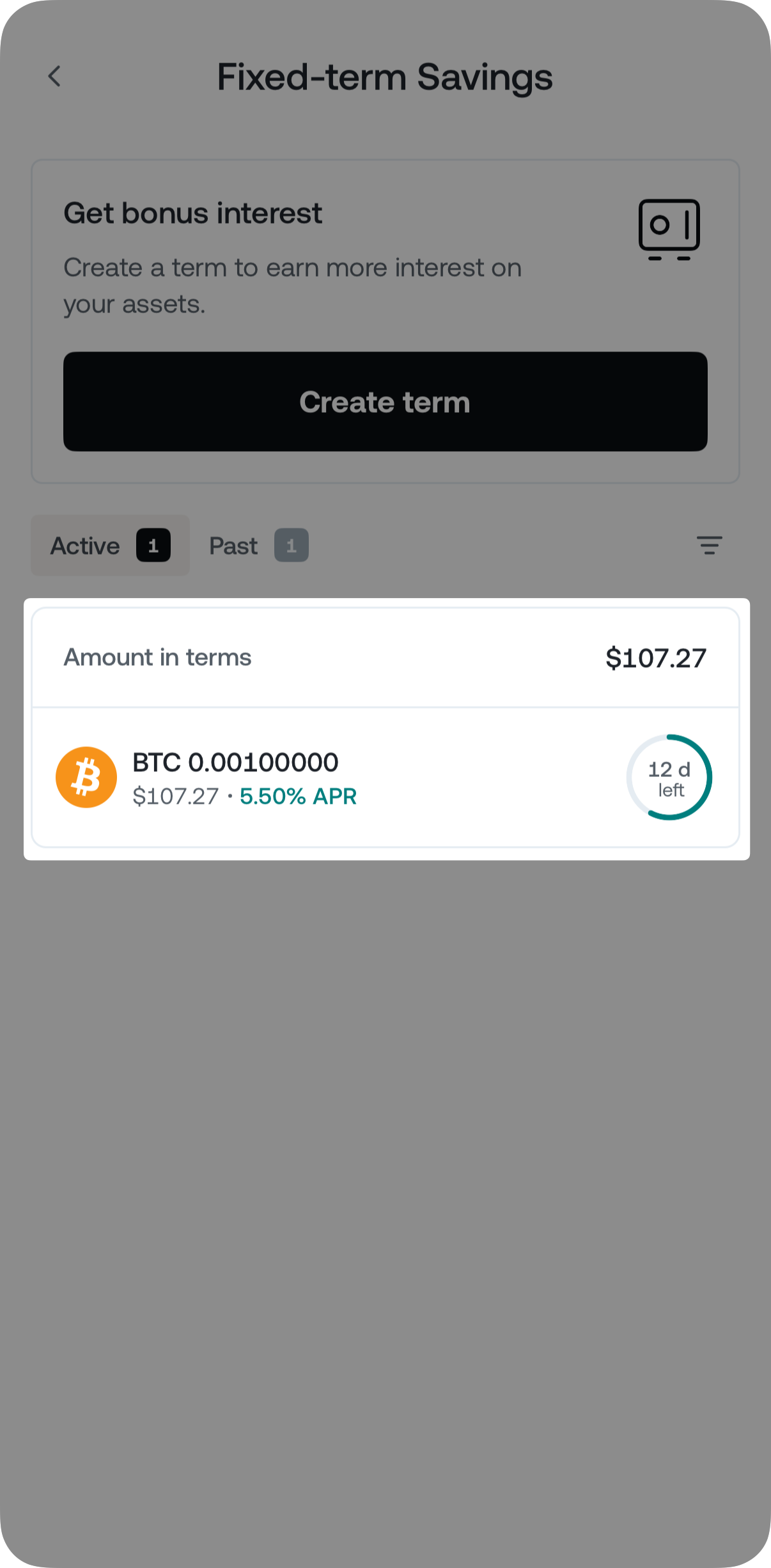 • Similar to Flexible Savings, assets in Fixed-term Savings accrue interest daily, but the earned interest is paid in a single transaction once the term ends.