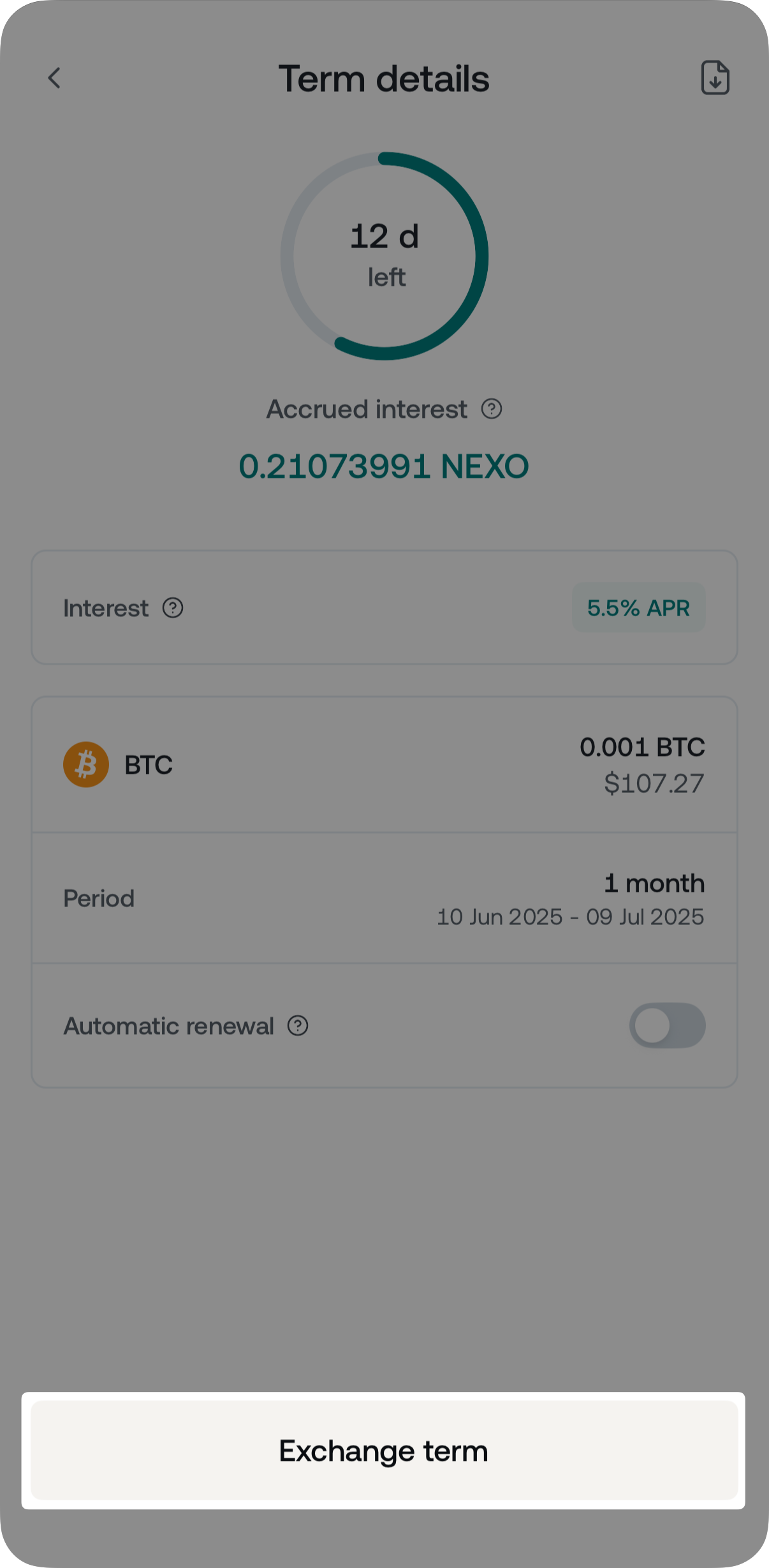 2. Select the fixed term you wish to exchange, and on the next screen, tap Exchange term.