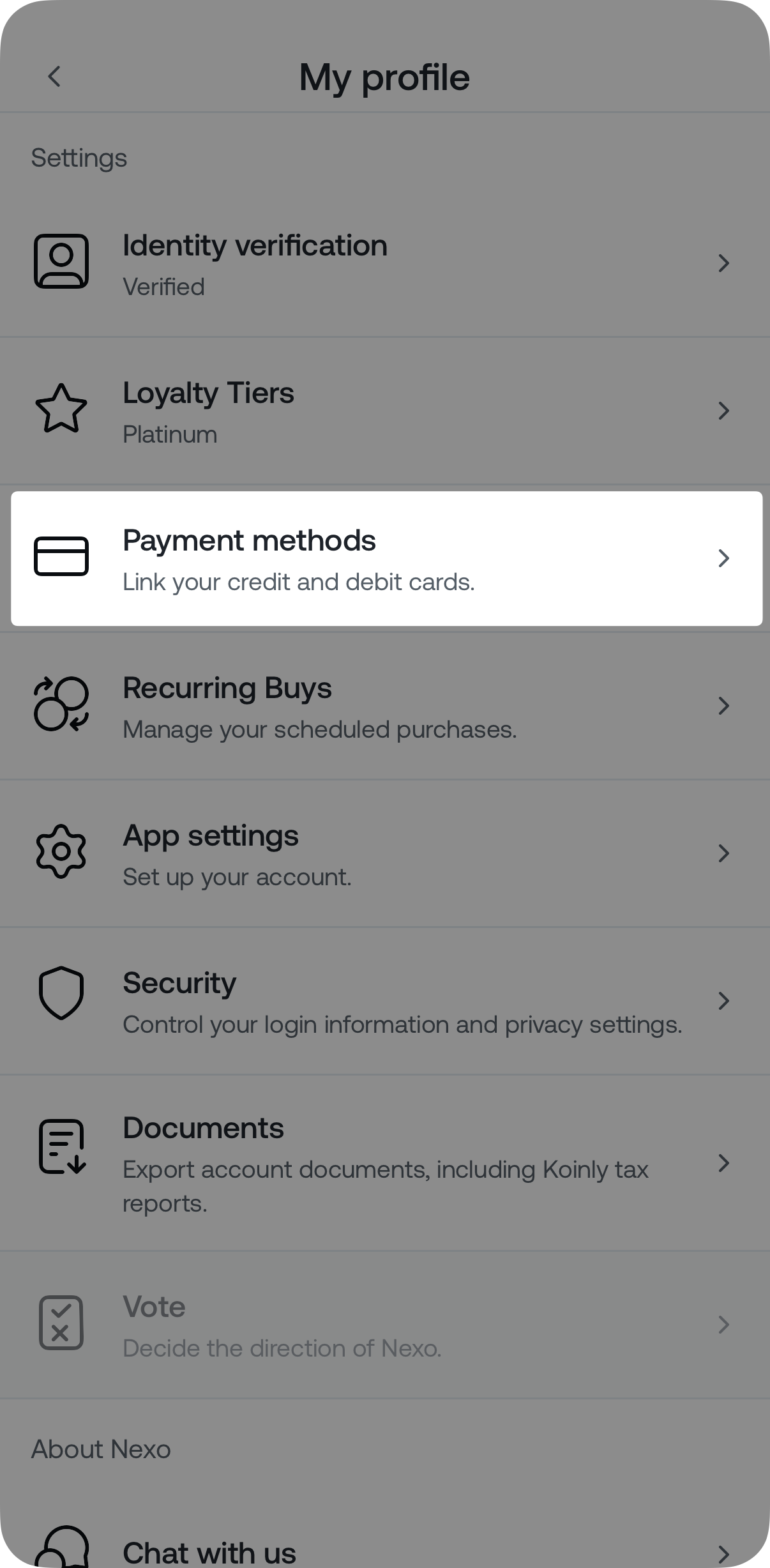 - The Buy with Card and Withdraw to Card services are enabled by Nexo Services UAB, which partners with third-party payment providers for the purpose of these functionalities.