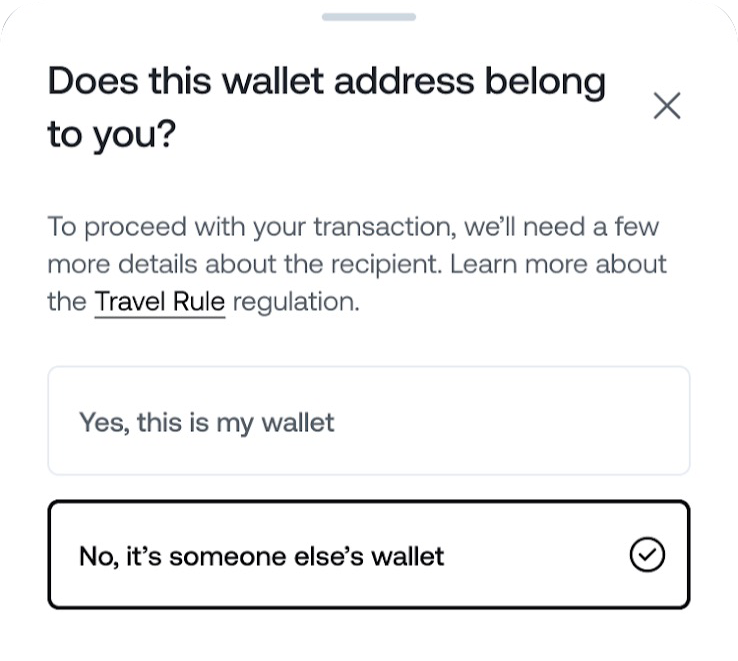 You will be requested to specify whether the non-custodial wallet belongs to you or a third party.
