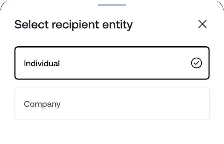 Next, you must specify if the recipient wallet belongs to an individual or a company.