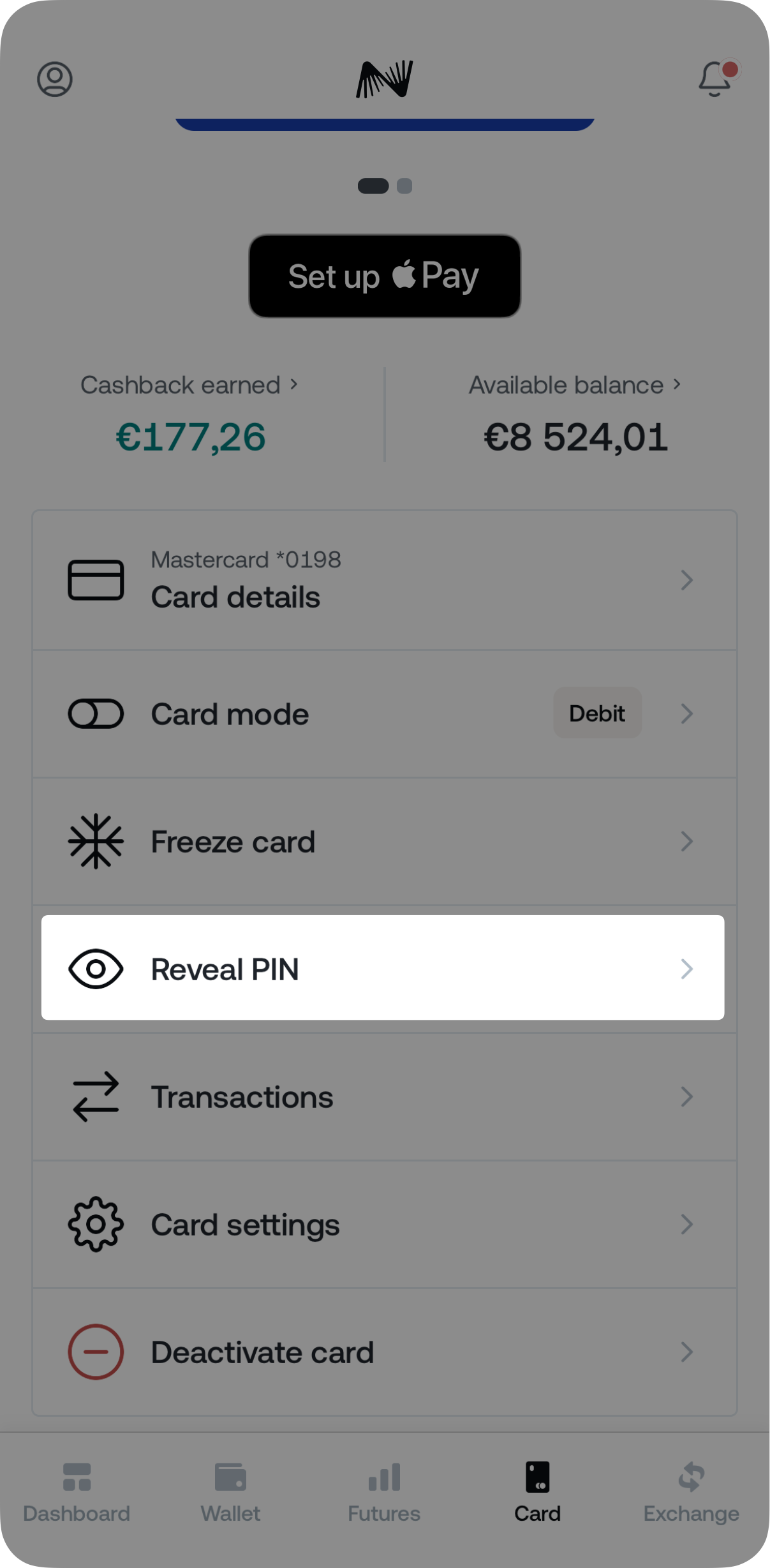 If you need to check your Nexo Card’s PIN code, simply follow the steps below: